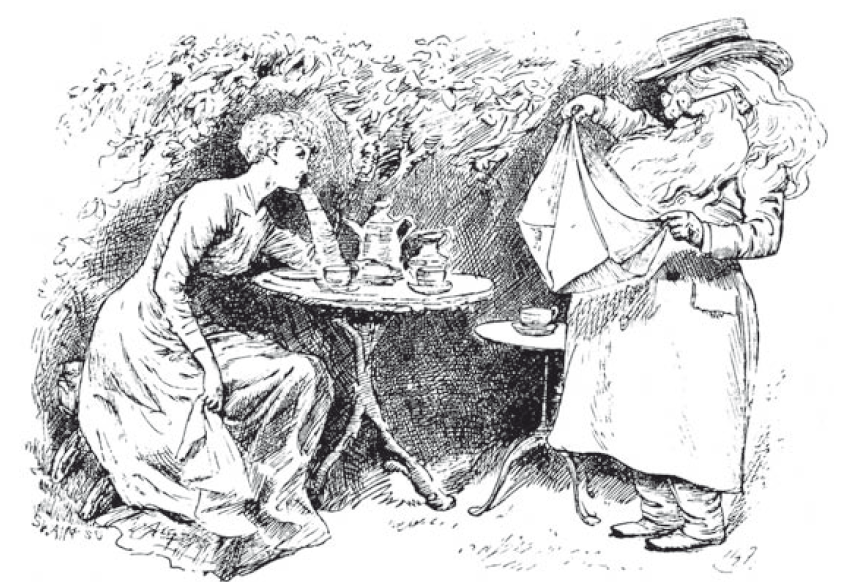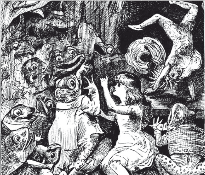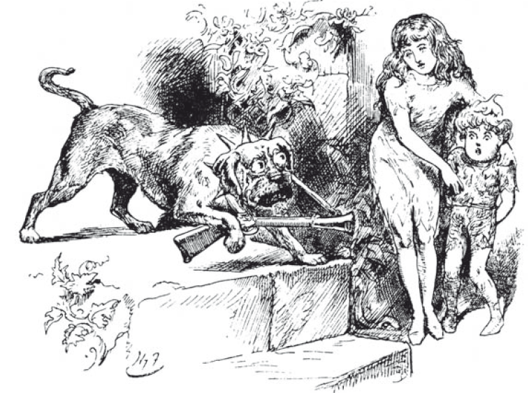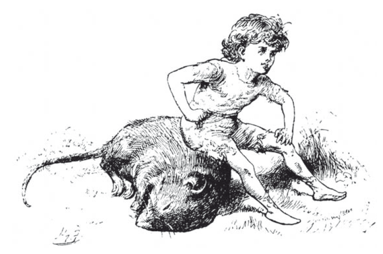 “The dragon was represented by two men clothed in a green skin with some scales stuck about it. At one end of the skin they wagged a tail, and at the other end they opened a crocodile’s mouth, out of which came fire. The dragon, which ought to have been a frightful beast—and perhaps he would have frightened children about five years old—said a few words in a bass voice.”
