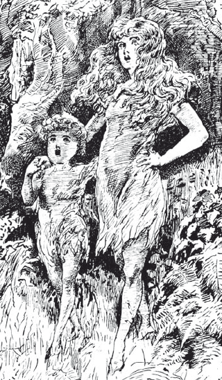 ‘When I arrived, an actor in tight-fitting breeches was seated before an object that was meant to represent an anvil. He wore a wig and false beard; his white and manicured hands had nothing of the workman about them; and his easy air, prominent belly, and flabby muscles readily betrayed the actor. With an absurd hammer he struck—as no one else would ever strike—a fantastic-looking sword-blade. One guessed he was a dwarf, because when he walked he bent his legs at the knees. He cried out a great deal, and opened his mouth in a queer fashion. The orchestra also emitted peculiar noises like several beginnings that had nothing to do with one another. Then another actor appeared with a horn in his belt, leading a man dressed up as a bear, who walked on all-fours. He let loose the bear on the dwarf, who ran away, but forgot to bend his knees this time. The actor with the human face represented the hero, Siegfried. He cried out for a long time, and the dwarf replied in the same way. Then a traveller arrived—the god Wotan. He had a wig, too; and, settling himself down with his spear, in a silly attitude, he told Mimi all about things he already knew, but of which the audience was ignorant. Then Siegfried seized some bits that were supposed to represent pieces of a sword, and sang: